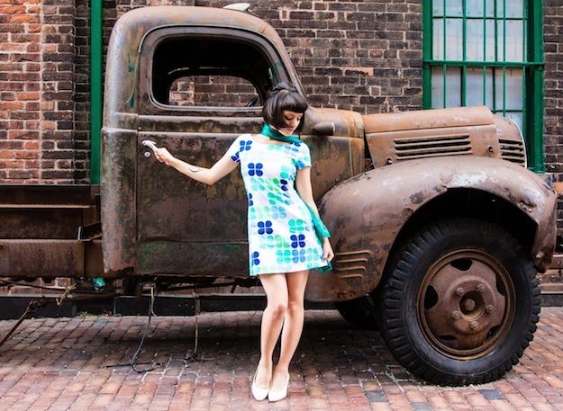 The beautiful Amanda of retro blog Welcome to Flipsville reviews the Caroline Dress in 'Mod Bloom Blue'
