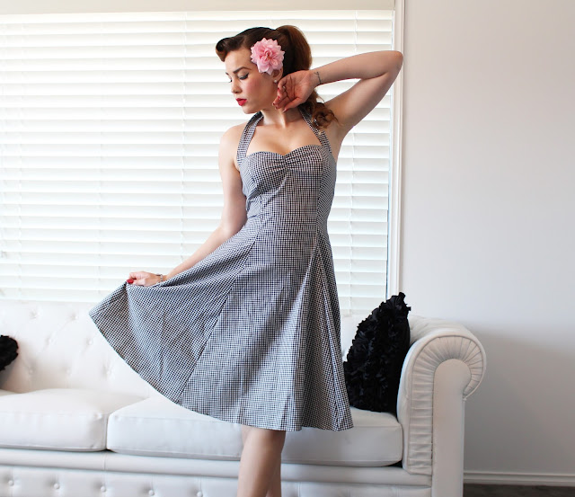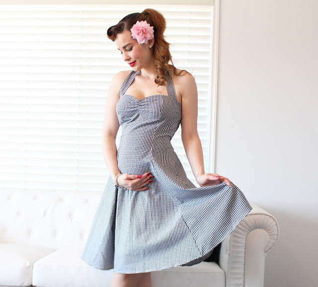 I grabbed one in black gingham to match an outfit Selene already had (shocked?). I got a size medium, up a size from my usual small. I didn't need to and regret the decision now, as I have some fabric bunching in the back that I know I wouldn't have had with my normal size. I can safely say that even a size small would easily get me through all of pregnancy in this dress.
