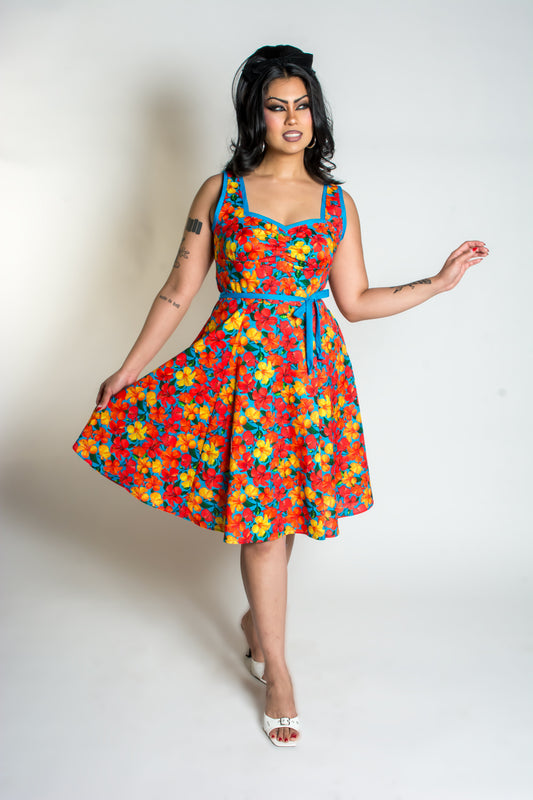 Sadie Dress- Tropical, Orange & Turquoise *sale