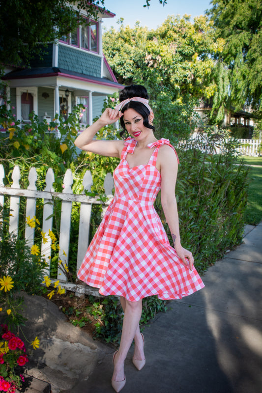 Sarah Swing Dress - Big Gingham, Coral *sale