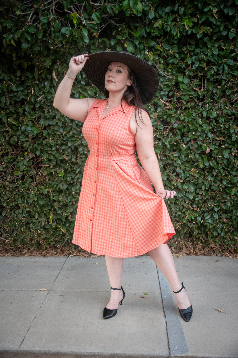 The Betty Lou Dress is a classic day dress with classic collar, full button up, and ties at the back. This design also incorporates Princess Seams and a full 6-panel skirt for a figure-flattering fit. The lightweight fabric makes it perfect for warm-weather wear.