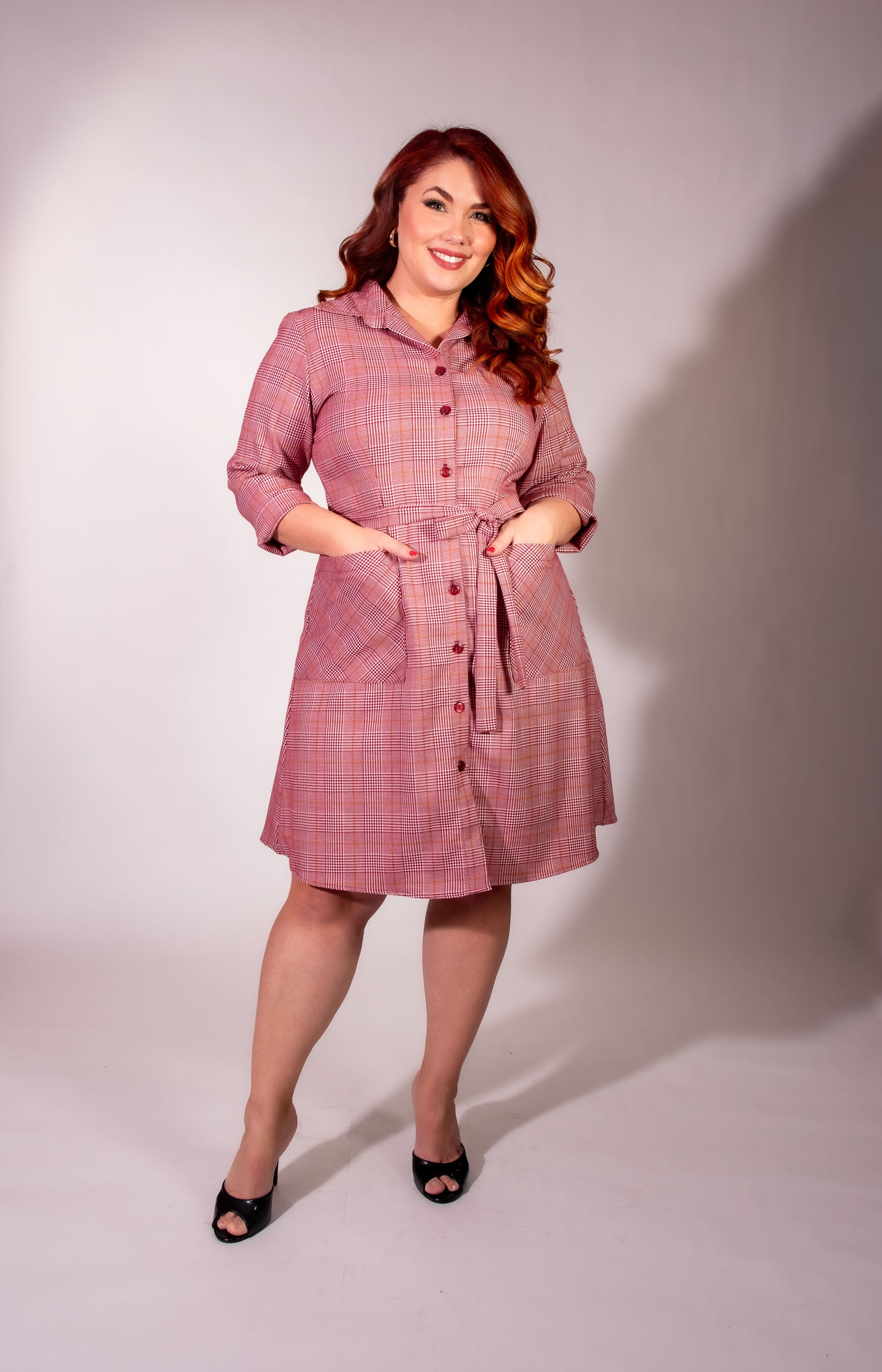 Shirt Dress - Burgundy Plaid