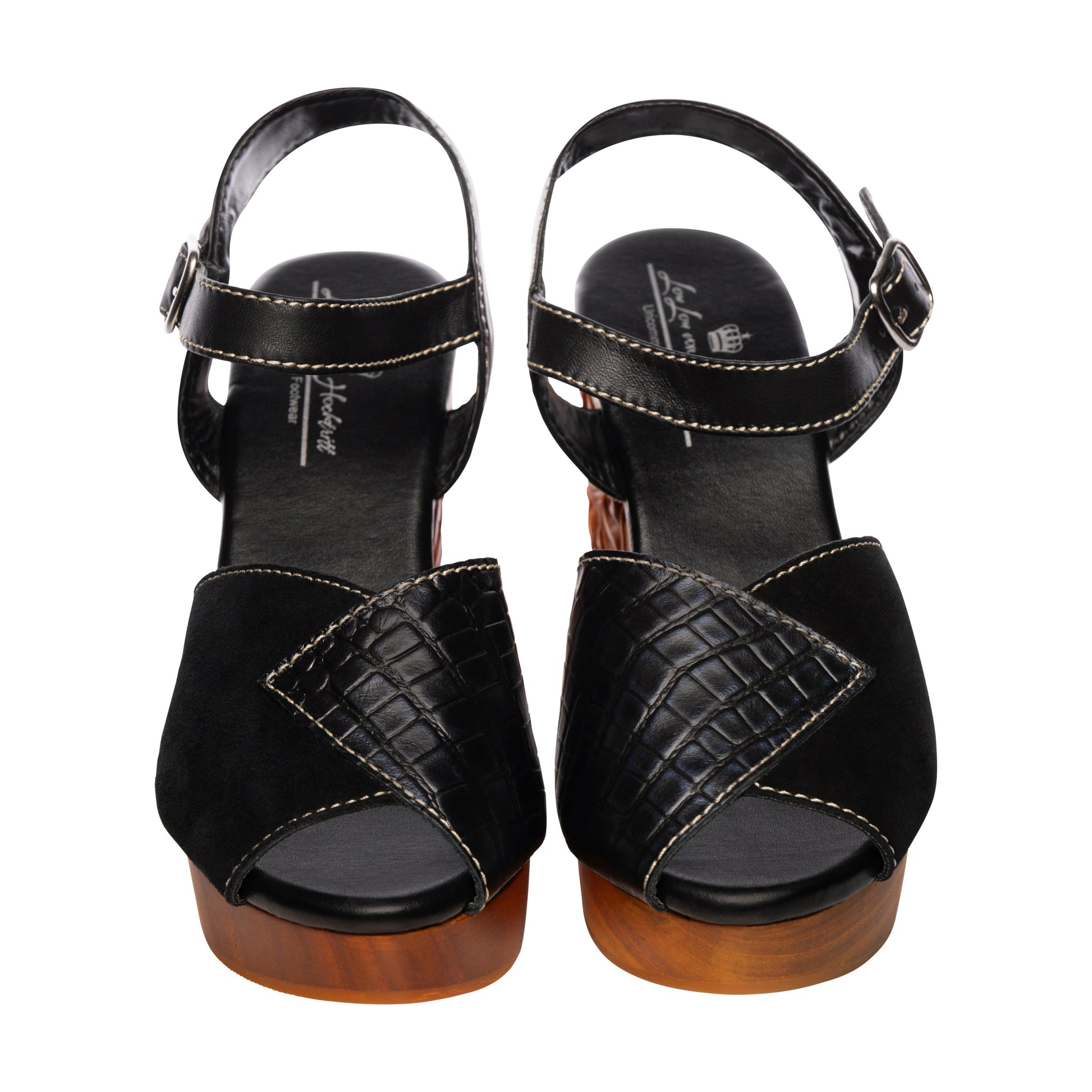The soft Black Suede and Snake Print leather toe strap is lined with soft Black leather