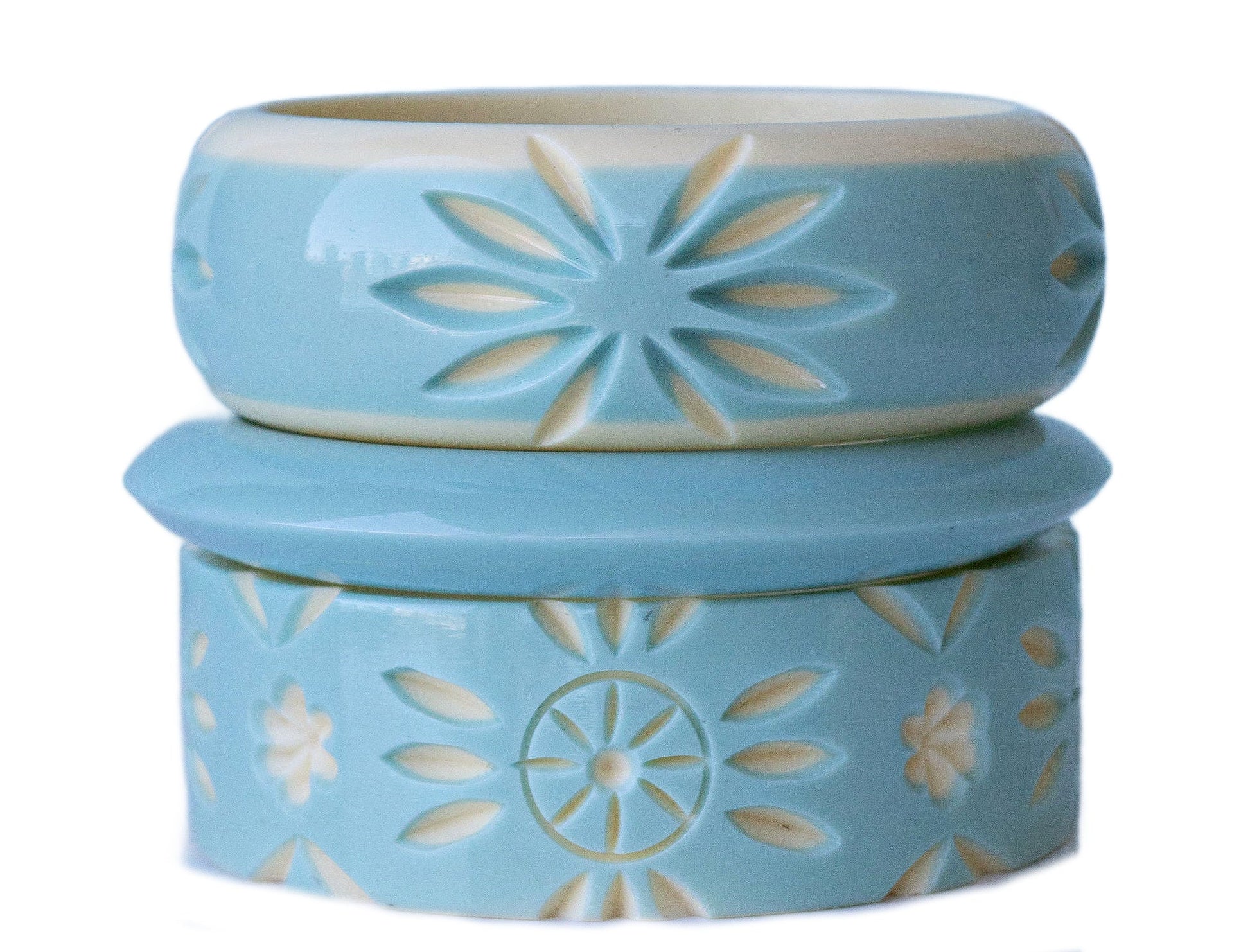 Beautiful muted colors, mid-century styling and vintage-inspired lucite bangles. It's everything we LOVE about Palm Springs and MCM looks and it's all together in a set of bangles that are sure to go with all your vintage and modern outfits!